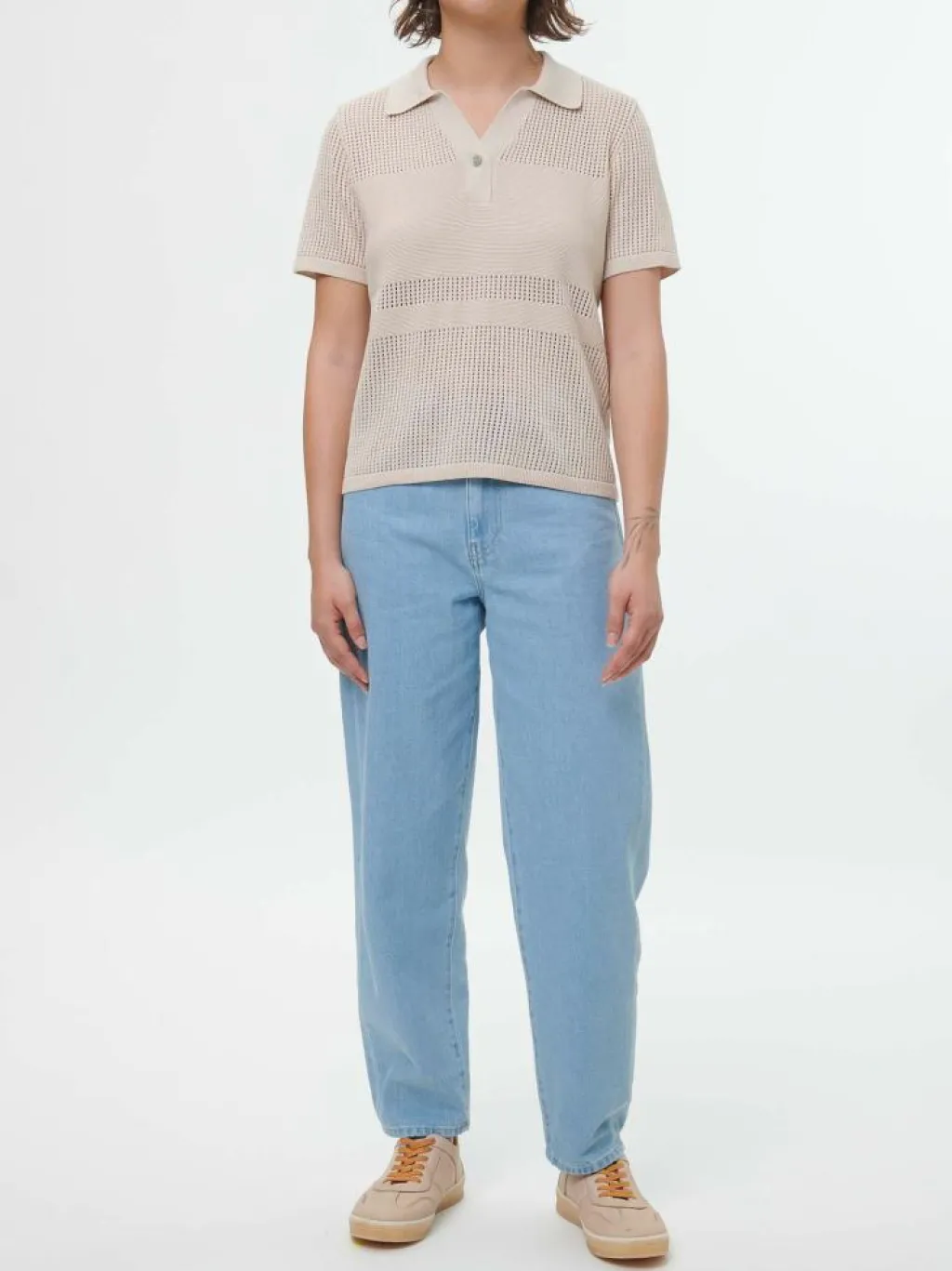 - Mesh-Strickmuster in Kombination mit Feinstrick-Einsätzen