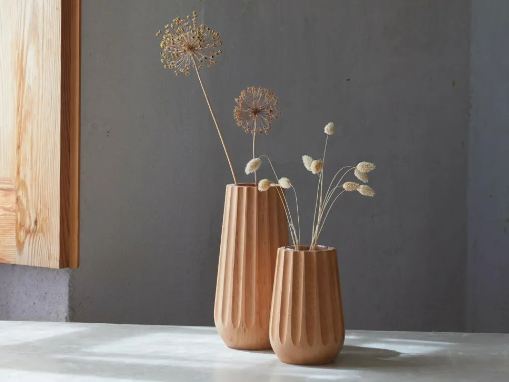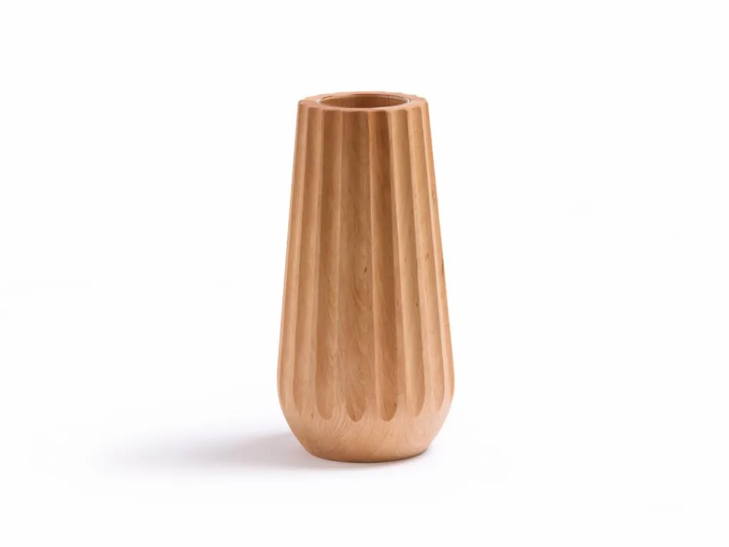 Grüne Erde Wohndekoration^Vase aus Erlenholz, Kannelur, H 26,5 cm, geölt, inkl. Glaseinsatz