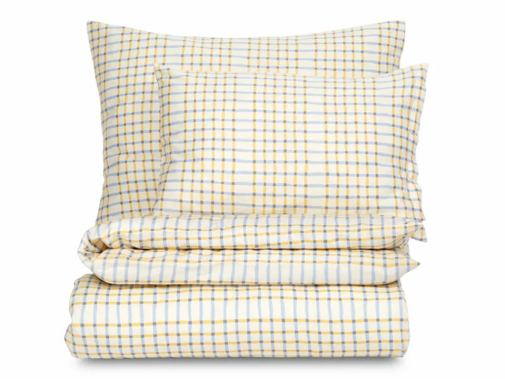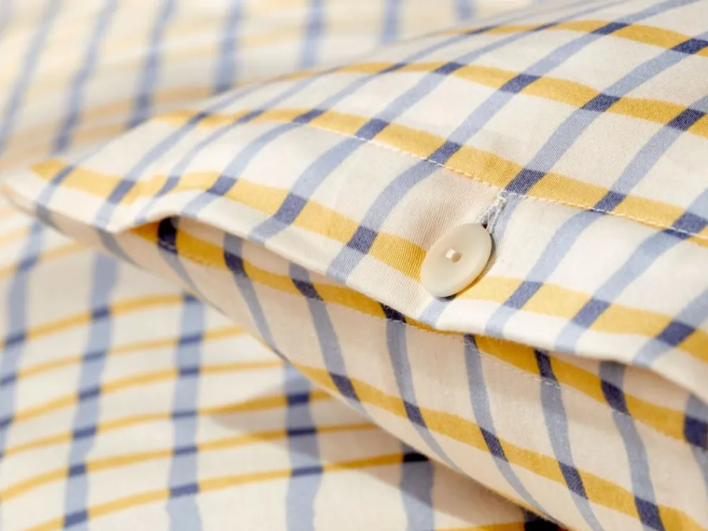 Diese Bettwäsche bringt Frische und Leichtigkeit in den Raum. Sie entsteht aus zart-fließender Satin-Qualität, die sich angenehm weich anfühlt und für luftig-leichten Komfort sorgt – aus reiner Bio-Baumwolle, in Deutschland gefertigt und nach dem strengen GOTS zertifiziert. Das zarte Karo-Muster mit der weichen Linienführung auf naturfarbenem Untergrund verleiht Jemma eine elegante, zeitlose Optik. Abgerundet mit einem sichtbaren Knopfverschluss mit Steinnussknöpfen.