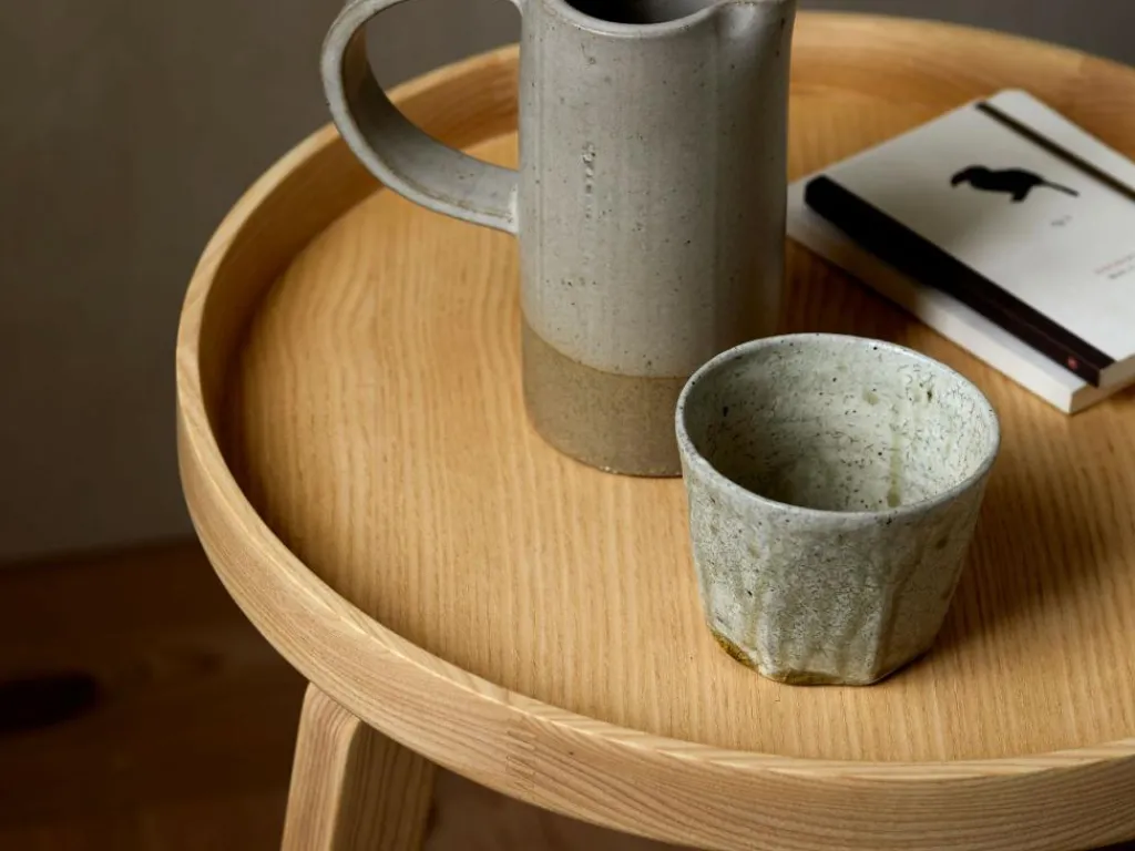 Ein feinsinniger, schlank dimensionierter, vertikal ausgerichteter, leichter und mobiler Beistelltisch, der auch in kleineren Räumen gute Dienste leistet, ohne sich selbst in den Vordergrund zu drängen.